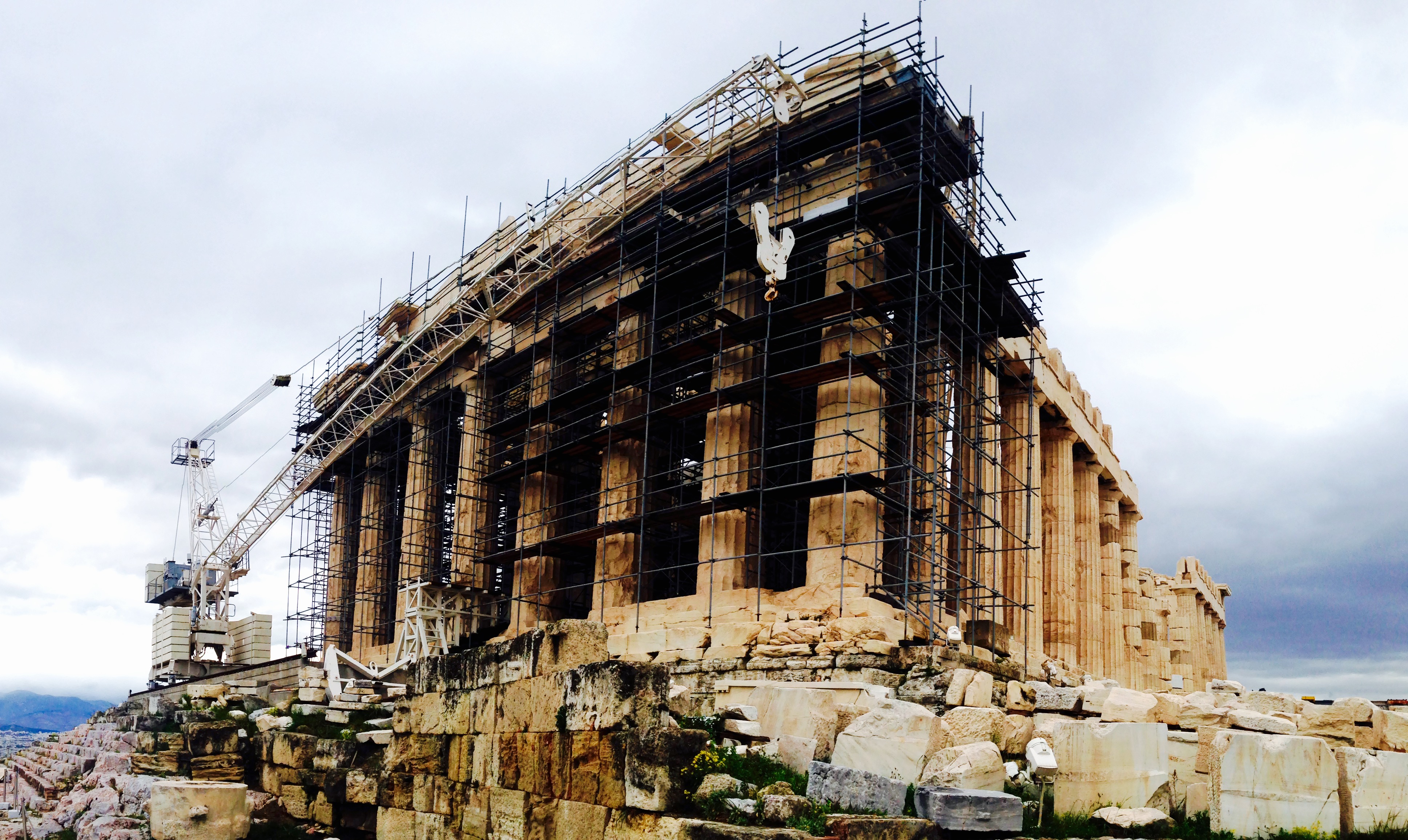 Although The Acropolis in all its magnificent grandeur, housing the Parthenon, Dionysos Theatre and the old Temple of Athena was a site to behold, and the many heritage sites that spread across the city of Athens – Hadrian’s Arch and The Temple of Zeus; the Temple of Hephaistos and the Agia Marina; the Kerameikos Archaelogical site and the Mitropolis (cathedral) – were wonderful and to see close up – truly something special – the scaffolding that surrounded and engulfed many of the structures, there for preservation and restoration purposes, was off-putting and took away some of the shine that should’ve beamed so naturally from such incredible ruins. The graffiti was a big problem too; in fact, a huge problem and one I couldn’t not notice (even the stone steps on the hill of the acropolis are tainted in sloppy spray painted graphics). And it wasn’t decent graffiti either – it was graffiti for the sake of graffiti; it was a far cry from the street art on Berlin’s East Side Gallery, for example.